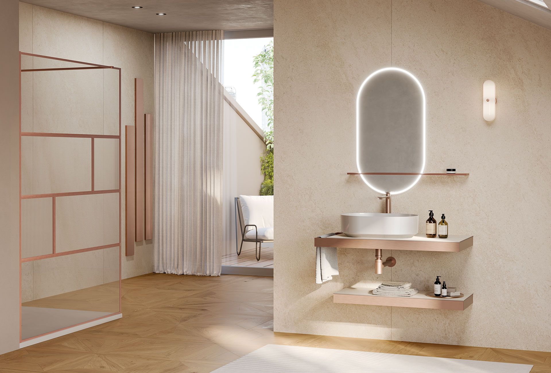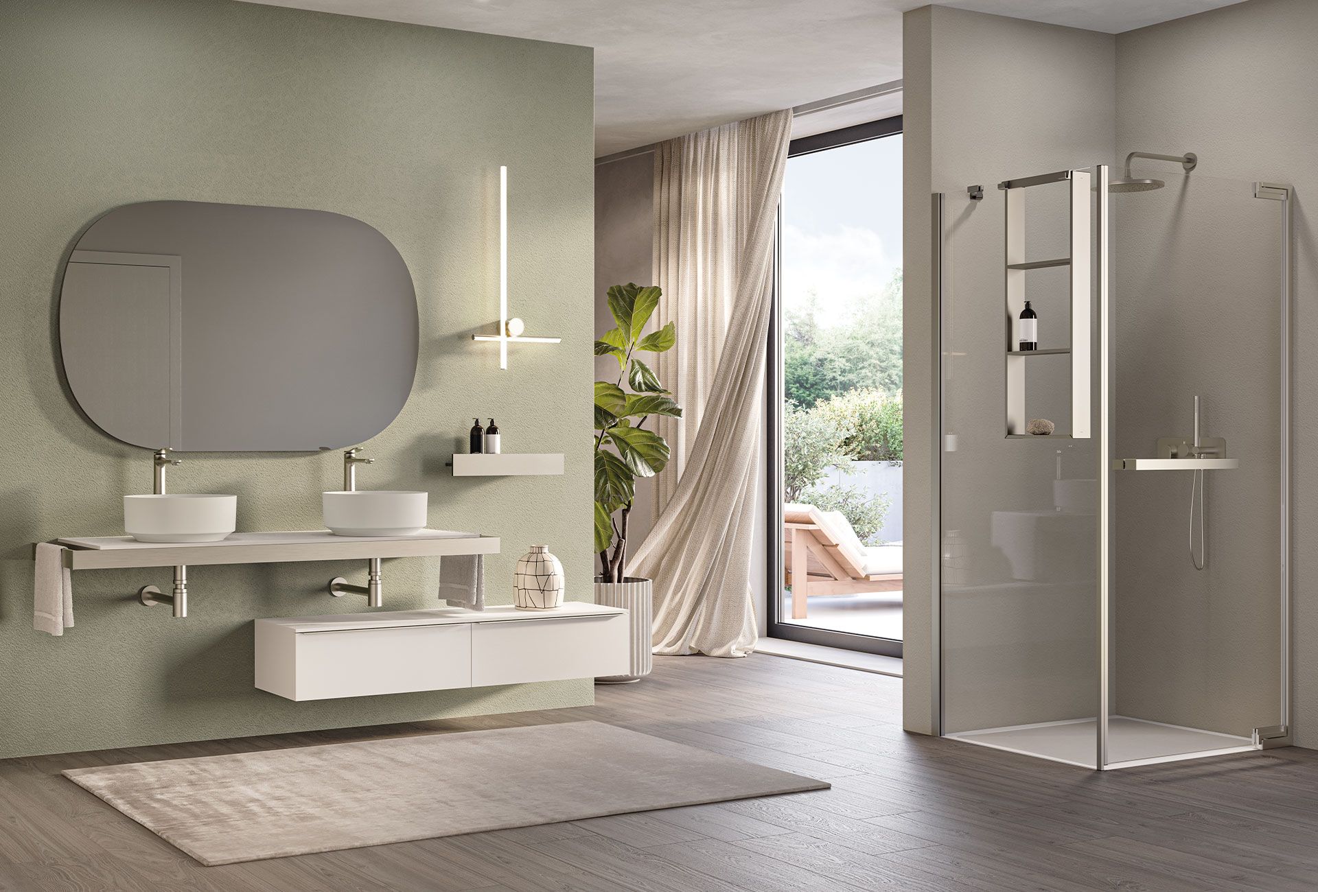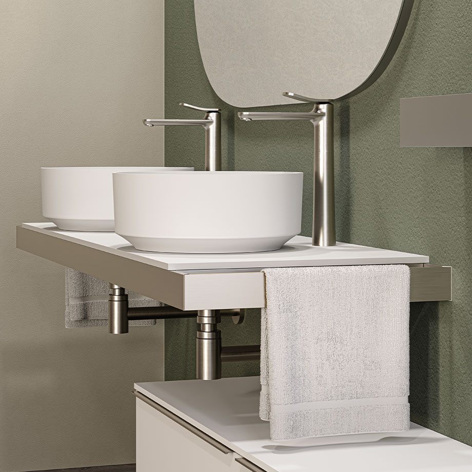 CM FRAME, disegnata da Marco Pellici, rappresenta una sintesi equilibrata tra tecnologia, modularità e coerenza estetica, ideale per spazi professionali e residenziali che coniugano eleganza e performance. Il top con accessori integrati si abbina a un frame in alluminio da 60 mm, disponibile nelle finiture spazzolate o opache Novellini, conferendo al prodotto una forte identità materica e un linguaggio in continuità con l’universo del brand.